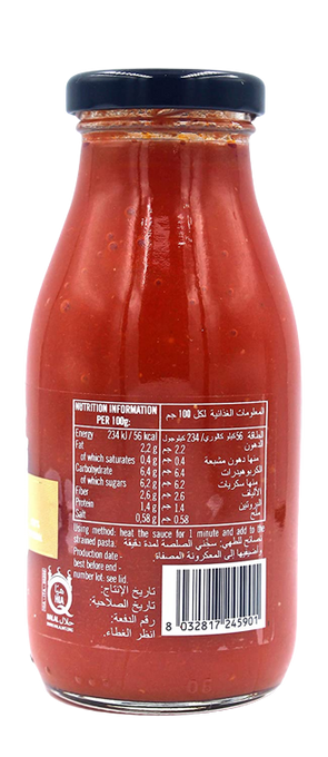 Ingredients: Cherry Tomato (89,9%), Ricotta Cheese (2,5%) (Whey Of Cow’S Milk, Cow’S Milk, Salt), Extra Virgin Olive Oil, Carrot, Onion, Salt, Basil, Celery, Sugar.