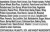 Ingredients: Chicory Root Extract, Soy Protein Isolate, Puffed Durum Wheat, Rice Flour, Erythritol, Polydextrose, Palm Kernel and Palm Oil, Corn Syrup, Vegetable Glycerin, Whole Grain Oats, Peanut Flour, Whey Protein Concentrate, Whole Grain Barley Flakes, Canola Oil, Rice Starch, Roasted Peanuts, Dutch Cocoa (processed with alkali), Peanuts, Soluble Corn Fiber, Soy Lecithin, Salt, Maltodextrin, Sugar, Natural Flavor, Peanut Oil, Barley Malt Extract, Cellulose Gum, Baking Soda, Stevia Leaf Extract, Caramel Color, Vitamin E (mixed tocopherols) Added to Retain Freshness.