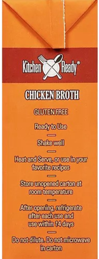 Ingredients: Filtered Water, Chicken Broth Base (Chicken Broth, Natural Chicken Flavors (with Other Natural Flavors), Dextrose, Salt, Natural Flavors, Yeast Extract, Celery Juice Concentrate, Carrot Juice Concentrate, Onion Juice Concentrate, Turmeric), Sea Salt.