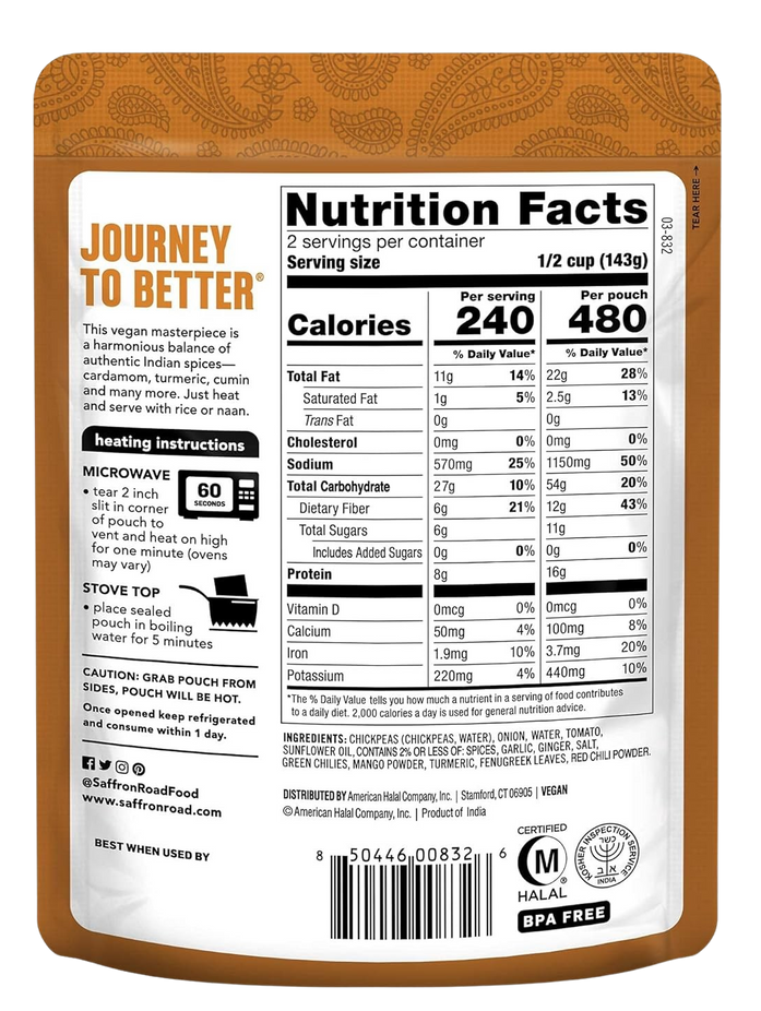 Saffron Road Chickpeas Masala is a flavorful Indian dish infused with rich tandoori spices and cultural intrigue.