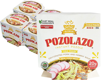 Experience the bold and spicy flavors of Mexico with Pozolazo Instant Pozole Chile Piquin. This traditional dehydrated pork and hominy soup is enhanced with the fiery kick of chile piquin, making it a perfect choice for spice lovers. Made with real pork meat, this soup is packed with 20g of protein per serving, offering a hearty and nutritious meal that can be prepared in minutes. Simply add hot water, and enjoy the rich, comforting taste of pozole with a spicy twist.