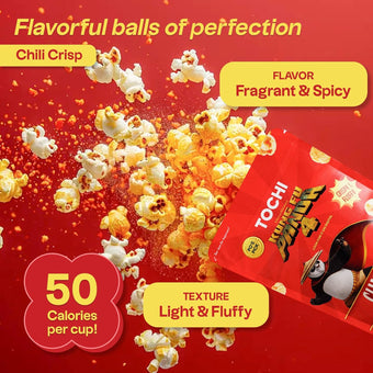 Tochi Chili Crisp Gourmet Popcorn delivers a fiery and flavorful kick inspired by the traditional 'mala' sensation of Sichuan cuisine.