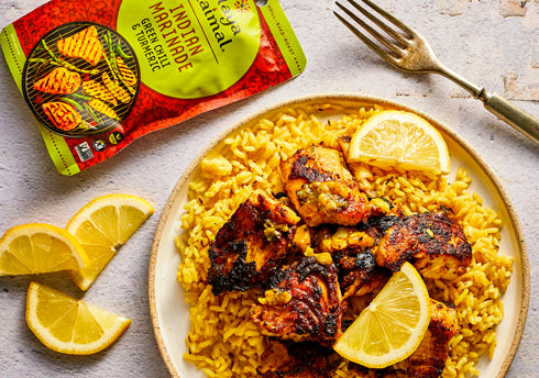 Ingredients: Water, Onion, Safflower Oil, Ginger, Sea Salt, Cane Sugar, Garlic, Spices (Coriander Seed, Turmeric, Black Pepper, Fennel), Lemon Juice Concentrate, Chickpea Flour, Serrano Pepper, Organic Tapioca Starch, Cilantro.