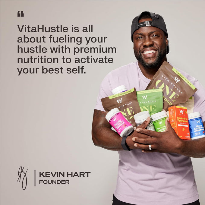 VitaHustle, founded by Kevin Hart, is on a mission to elevate your wellness journey with premium, plant-based supplements that deliver real results.