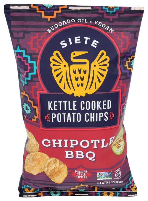 Siete’s chipotle BBQ potato chips combine bold, smoky flavor with the satisfying crunch of kettle-cooked chips.