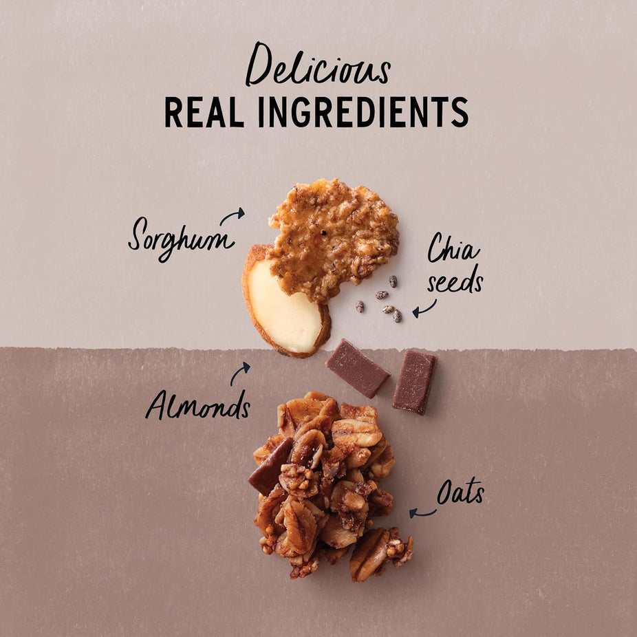 Ingredients: Sorghum, Organic Certified Gluten-Free Oats, Organic Coconut Sugar, Almonds, Organic Coconut Oil, Organic Dark Chocolate Chunks (Organic Cane Sugar, Organic Chocolate Liquor, Organic Cocoa Butter, Organic Vanilla Extract), Cocoa Powder, Organic Puffed Amaranth, Sea Salt, Vanilla Extract, Organic Chia Seeds, Organic Plant-Based Vitamin D3 (VegD3), Vitamin E (Mixed Tocopherols) Added to Preserve Freshness.