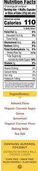 Ingredients: Almond Flour Organic Coconut Sugar Cocoa Arrowroot Organic Coconut Flour Baking Soda Sea Salt