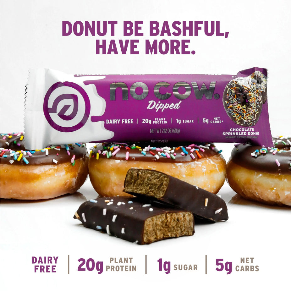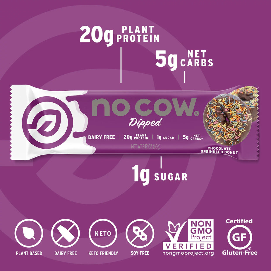 Ingredients: Protein Blend (Brown Rice Protein, Pea Protein), Soluble Corn Fiber, Chocolate Coating (Chocolate Liquor, Erythritol, Inulin, Cocoa Butter, Sunflower Lecithin, Vanilla Powder, Stevia Extract), Glycerine, Almonds, Palm Oil (Sustainably Sourced), Water, Sweetener Blend (Erythritol, Stevia Leaf Reb M, Monk Fruit), Natural Flavors, Cocoa Powder (Processed with Alkali), Salt, Sprinkles (Erythritol, Soluble Corn Fiber, Palm Oil (Sustainably Sourced), Natural Colors).