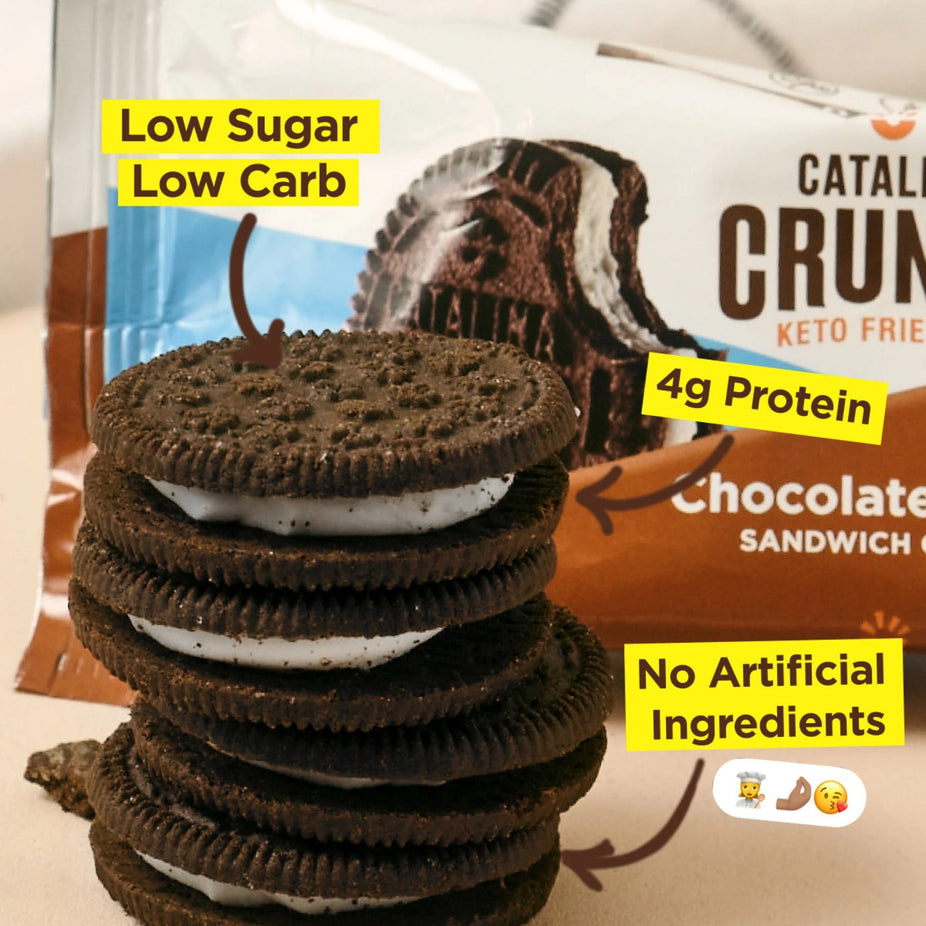 Our sandwich cookies are made with the delicious taste and crunch of your favorite cookies, featuring plant-based protein and fiber with minimal sugars, made from specially curated natural ingredients.