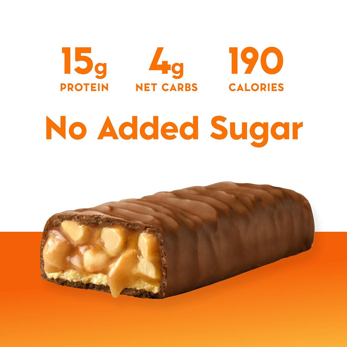 Features crunchy peanuts, gooey caramel, and a rich chocolate coating