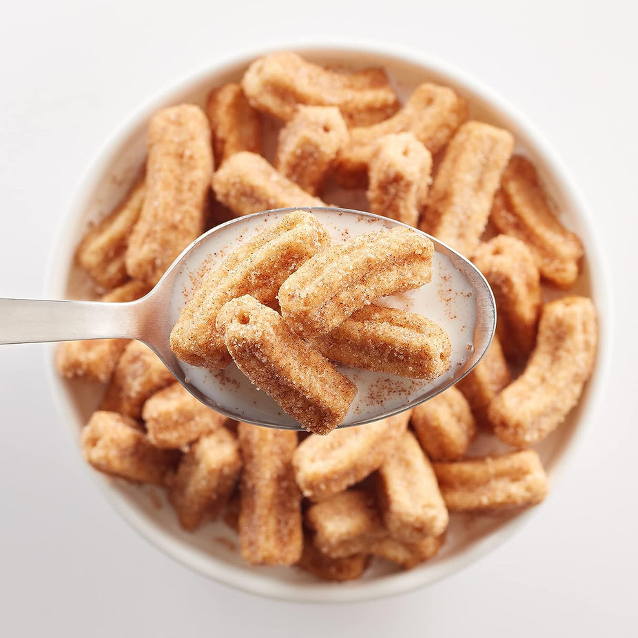 Make breakfast your fiesta time with General Mills Churros Cinnamon Toast Crunch Breakfast Cereal. Each twisty bite captures the shape, color and excitement of churros, that epic cinnamon-sugar treat. The churro-shaped cereal is blasted with CINNADUST, the irresistible mix of real cinnamon and sugar that makes your mouth happy. Just pour a bowl and add milk for part of a delicious kids breakfast. Don't forget to slurp up the CINNAMILK—that delicious cereal milk you find at the bottom of your bowl after enjoying the crunchy cereal. Grown-ups like the epic combination of cinnamon and sugar, too. Plus, every serving of Cinnamon Toast Crunch Churros provides vitamins and minerals. Enjoy this cinnamon cereal any way you like. Pack some in your lunch. Nibble from a bowlful as party snacks. Or make it into cereal bars to share. This 11.9-ounce box contains about 8 servings of sweetened rice and whole wheat cereal and is an official participating Box Tops product to help support education. Whether you're looking for delicious kids snacks, snack mix ingredients or a breakfast cereal for the whole family, General Mills cereals spread goodness from tots to grown-ups.
