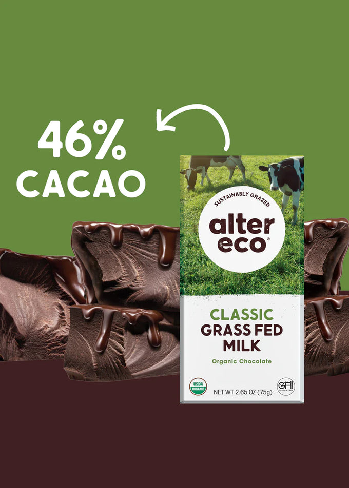 This Grass-Fed Classic Milk Chocolate Bar is made with high-quality milk from pastured cows for a silky and satisfying treat anytime, and with nature's nutrients! Simply delicious, nutritious chocolate for the chocolate purist! Pick up a couple of bars today!