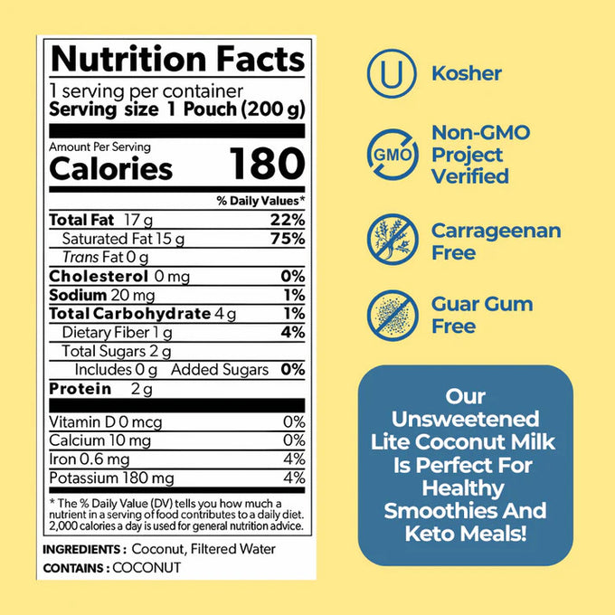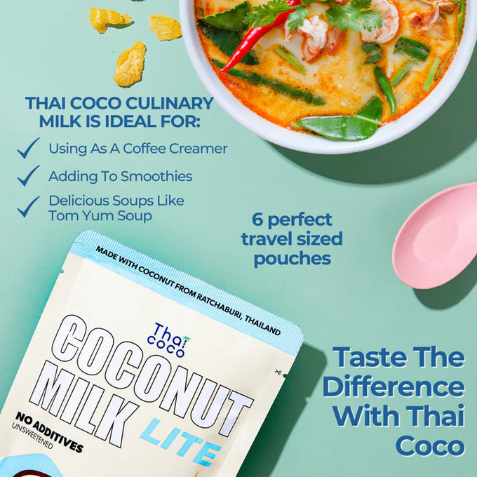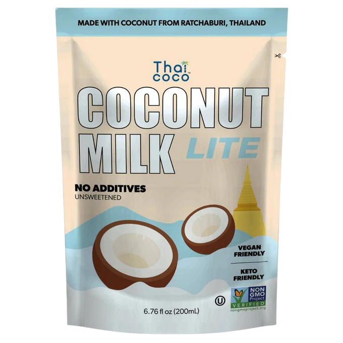 Thai Coconut Coconut Milk Lite Pouch offers a smooth, dairy-free alternative made with just two simple ingredients for a versatile kitchen staple.