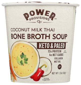 Ingredients: Coconut Milk (Coconut Milk, Tapioca Maltodextrin, Gum Acacia)*, Chicken Bone Broth*, Chicken Broth,Chicken Fat*, Mct Oil (Coconut Medium Chain Trigylceride Oil), Collagen*, Sea Salt, Chicken Meat*, Xanthan Gum, Calcium Silicate, Carrot*, Garlic*, Bell Pepper*, Tomato*, Ginger*, Rosemary Extract, Cilantro*, Green Onion*.