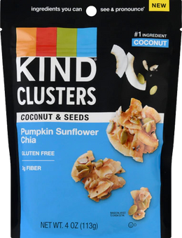 Ingredients: Coconut, Pumpkin Seeds, Sunflower Seeds, Cane Sugar, Brown Rice Syrup, Chia Seeds, Sea Salt. Allergen Information: Contains: Coconut. May Contain Peanuts, Tree Nuts, Milk, Egg And Soy.