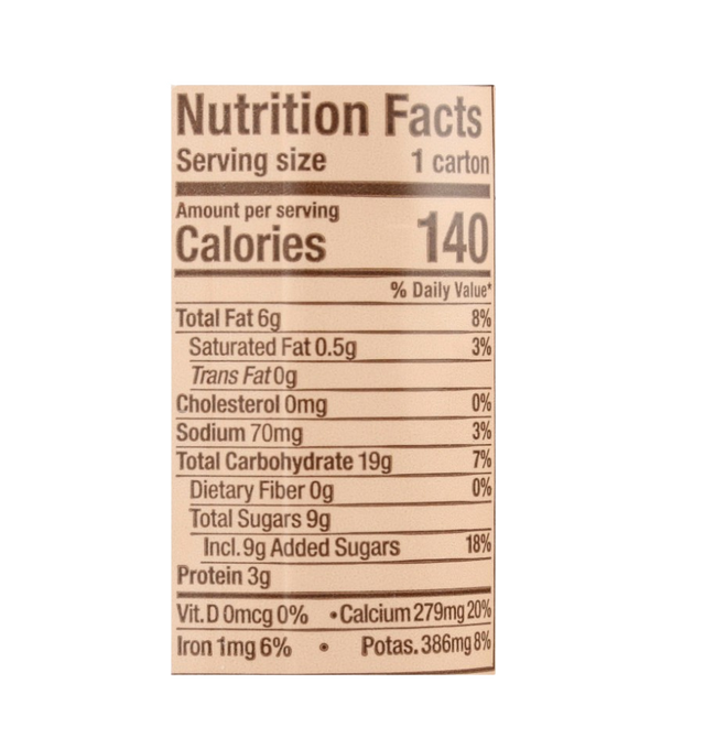 Ingredients: Oatmilk (water, oats), cold brew coffee (water, coffee), low erucic acid rapeseed oil, cane sugar, cocoa powder processed with alkali, dipotassium phosphate, gum acacia, gellan gum, calcium carbonate, tricalcium phosphate, sea salt, natural flavors, dicalcium phosphate.