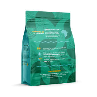 Clove and cinnamon mix with dark chocolate in this full-bodied blend dedicated to restoring Gorongosa's rainforests. Gorongosa Coffee keeps the smoke in dark roasts, not in our rainforests. Each bag funds one tree planted on Mount Gorongosa. This is helping restore one of the most biodiverse rainforests on Earth. Made from Gorongosa Green, the first coffee exported from Mozambique, expertly blended with other green coffee beans sourced from Sub-Saharan Africa.