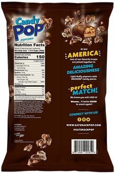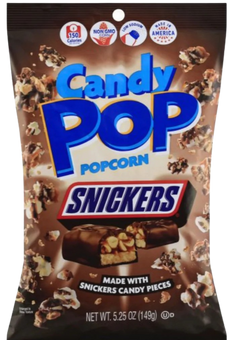 Ingredients: Confectionery Coating (Sugar, Palm Kernel Oil, Nonfat Dry Milk Powder, Cocoa Powder, Whole Milk Powder, Soy Lecithin, Salt, Natural Flavor, Paprika Extract), Popcorn, Sunflower Oil, Cane Sugar, Chopped Snickers® Bars [Milk Chocolate (Sugar, Cocoa Butter, Chocolate, Skim Milk, Lactose, Milkfat, Soy Lecithin), Peanuts, Corn Syrup, Sugar, Palm Oil, Skim Milk, Lactose, Salt, Egg Whites, Artificial Flavor], Dry Roasted Peanuts, Dextrose.