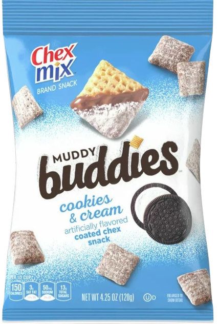 Chex Mix Cookies & Cream Muddy Buddies bring together crispy corn Chex pieces coated in a rich cookies and cream flavor with a smooth, powdery finish.