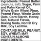 Ingredients: Peanut Butter (peanuts, salt), Sugar, Palm and Palm Kernel Oil, Whole Grain Wheat Flour, Peanut Flour, Whole Grain Oats, Partially Defatted Peanut Flour, Corn Starch, Peanuts, Salt, Honey, Nonfat Milk, Soy Lecithin, Natural Flavor, Baking Soda.