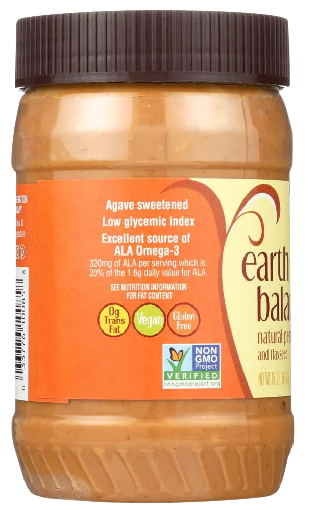 Earth balance crunchy peanut butter & flaxseed is a delightful and nutritious option for peanut butter enthusiasts. Each case contains twelve 16 oz jars of this flavorful and crunchy peanut butter. Made with high-quality peanuts and blended with flaxseed, this peanut butter offers a satisfying texture and a boost of ala omega-3s from the flaxseeds.