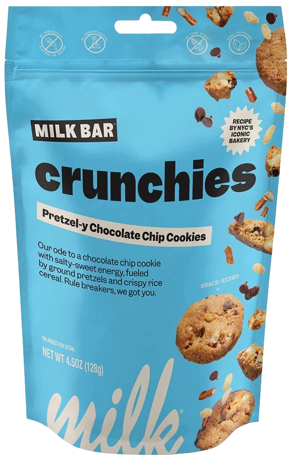 Ingredients: Enriched Wheat Flour, Sugar, Palm Oil, Chocolate Chips (Sugar, Unsweetened Chocolate, Cocoa Butter, Butterfat, Soy Lecithin, Vanilla Extract), Butter, Crisp Rice (Rice Flour, Sugar, Barley Malt Extract, Sea Salt), Pretzels (Enriched Wheat Flour, Malt, Salt, Soybean Oil), Molasses, Natural Flavors, Sea Salt, Baking Powder (Sodium Acid Pyrophosphate, Baking Soda, Cornstarch, Monocalcium Phosphate), Baking Soda.