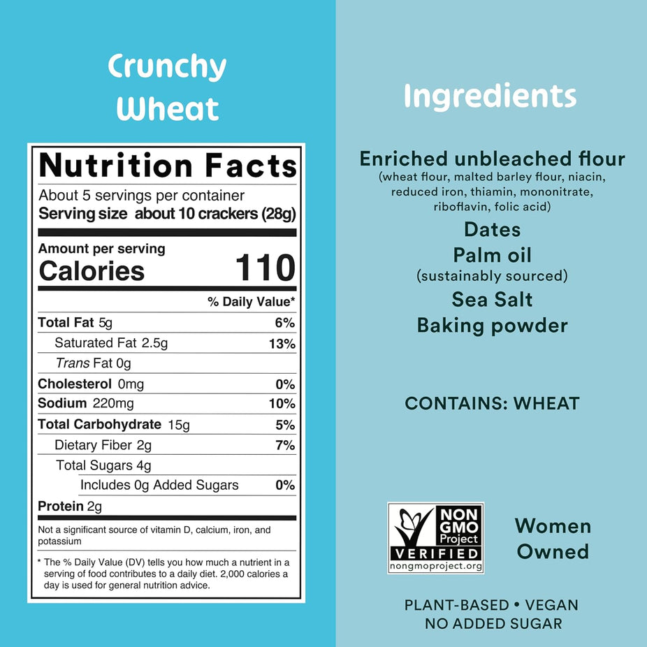 Ingredients: Enriched Unbleached Flour (Wheat Flour, Malted Barley Flour, Niacin, Reduced Iron, Thiamin, Mononitrate, Riboflavin, Folic Acid), Dates, Palm Oil, Sea Salt, Baking Powder.