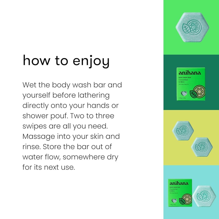 Enjoy a refreshing and planet-friendly cleanse with the Anihana Cucumber and Mint Body Wash Bar!