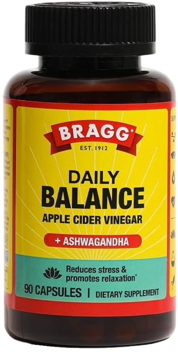 The Bragg Daily Balance Apple Cider Vinegar + Ashwagandha capsules combine the benefits of ACV and organic ashwagandha to support both mind and body.