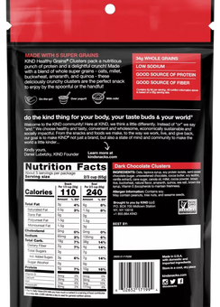 KIND’s Dark Chocolate Healthy Grains Clusters are a crave-worthy way to fuel your day. Enjoy them by the handful, over yogurt, or with milk for a better-for-you breakfast or snack.