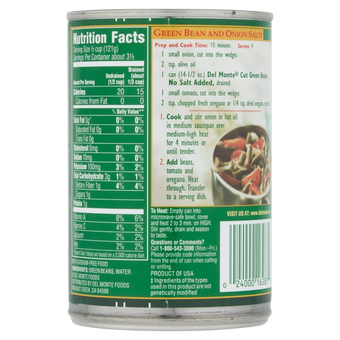 We pack rich, sweet Blue Lake green beans fresh, within hours of harvesting, for flavor that’s a cut above. Del Monte® canned green beans deliver the flavor and nutrition you seek with delicious simplicity. Our green beans are canned with just water and sea salt and are ready to be cooked as part of a recipe or enjoyed alone. They're the perfect ingredient for your favorite casseroles, side dishes, and more!