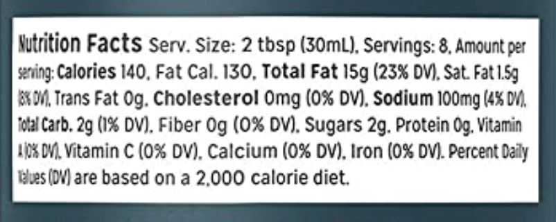 Ingredients: Sunflower Oil, Organic Balsamic Vinegar Of Modena (Organic Wine Vinegar, Organic Grape Must), Water, White Balsamic Vinegar (White Wine Vinegar, Grape Must), Organic Lemon Juice, Mustard Flour, Distilled Vinegar, Salt Mustard Seed, Black Pepper, Garlic Powder, Jasmine Tea Extract.