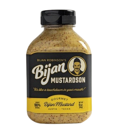 Finally, a gourmet Dijon mustard from football running back Bijan Robinson. It's smooth and rich with a Texas kick!