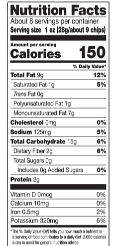 Ingredients: Potatoes, Safflower And/Or Sunflower And/Or Canola Oil, Maltodextrin, Salt, Garlic Powder, Vinegar, Sugar, Yeast Extract, Onion Powder, Natural Flavor, Spice, Citric Acid, Parsley.
