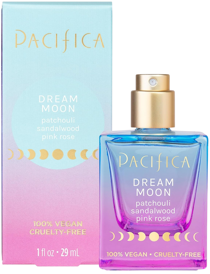Pacifica Dream Moon Spray Perfume is a dreamy blend of pink rose, sandalwood, and patchouli, delivering a rich, romantic scent that lingers all day.