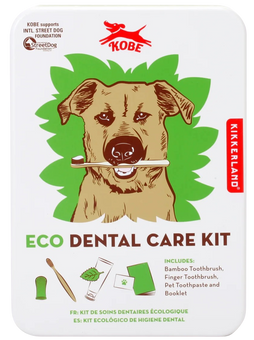 Keep your dog's teeth clean and healthy with Kikkerland's Eco Dental Care Kit, the perfect solution for maintaining your pet's dental hygiene at home or on the go.
