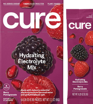 Hydrating electrolyte drink mix made with plant-based ingredients and no added sugar. Note: packaging may vary as Cure Hydration rolls out it's fresh new look!