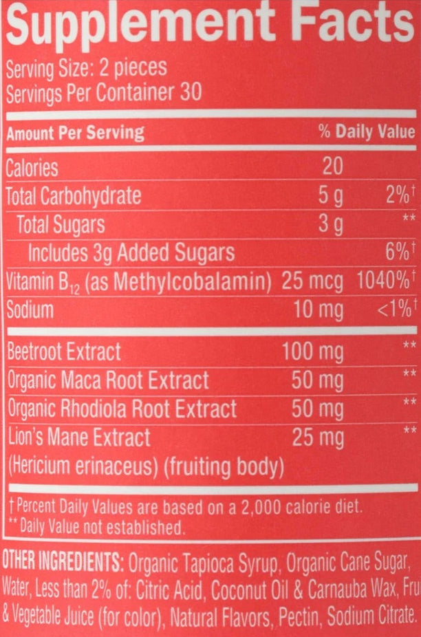 Ingredients: Organic Tapioca Syrup, Organic Cane Sugar, Water, Less than 2% of: Citric Acid, Coconut Oil & Carnauba Wax, Fruit & Vegetable Juice (for color), Natural Flavors, Pectin, Sodium Citrate.