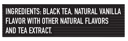 Ingredients: Black Tea, Natural Vanilla Flavor With Other Natural Flavors And Tea Extract