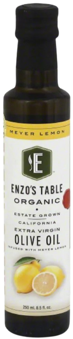 Add an elegant finishing touch to a variety of recipes with Enzo's Table Organic Meyer Lemon Extra Virgin Olive Oil. Estate grown in California, it goes through a rigorous development process before arriving on your dinner table. Each tree is planted, harvested at its peak and milled for its fruit. In the final step, the ripe, buttery organic olive oil is infused with the bright sweetness of Meyer lemon and carefully bottled. It makes an ideal complement to many tasty meals and recipes, including salad dressings, grilled fish, BBQ chicken and marinades and sauces. Enzo's olive oil is certified USDA organic.
