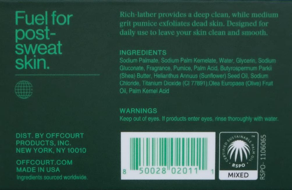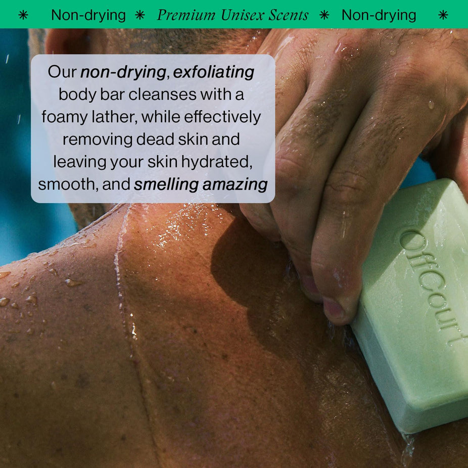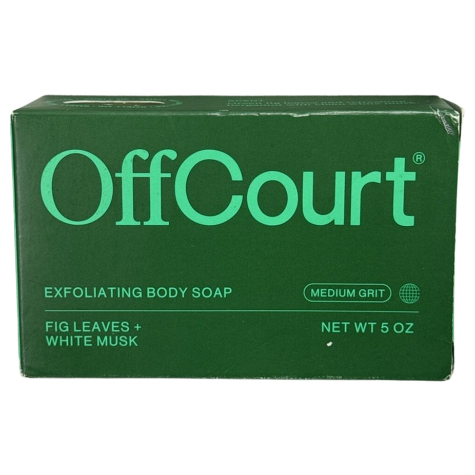 The OffCourt Exfoliating Body Soap Bar in Fig Leaf White Musk delivers a medium-grit cleanse that buffs, hydrates, and leaves skin irresistibly scented.