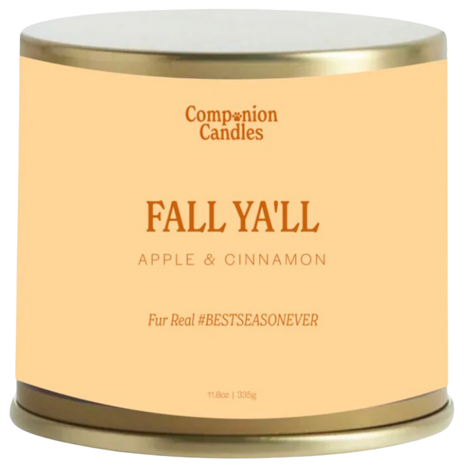 The Fall Y’all Apple and Cinnamon Candle delivers a warm, nostalgic blend perfect for crisp autumn days and cozy nights in.