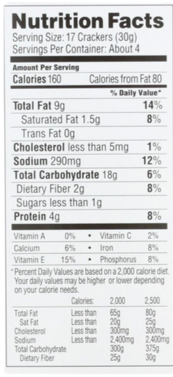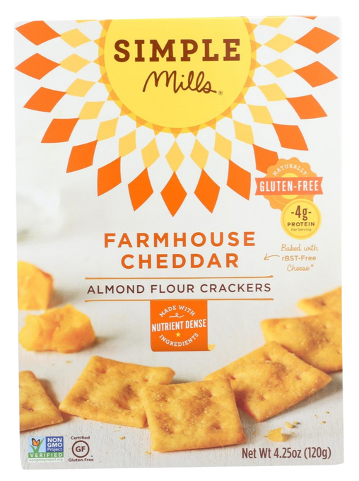 Ingredients: Nut & Seed Flour Blend (Almonds, Sunflower Seeds, Flax Seeds) Tapioca Starch Cassava Flour Organic Cheddar Cheese (Cultured Milk, Salt, Enzymes) Organic Sunflower Oil Sea Salt Organic Onion Organic Garlic Rosemary Extract (For Freshness) Paprika Extract Annatto Extract (For Color)