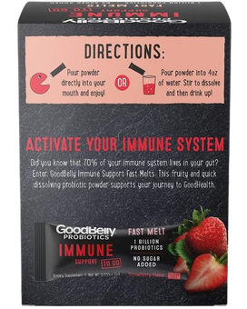 GoodBelly FastMelts Immunity Strawberry delivers a convenient and tasty way to support your immune system with live & active cultures.