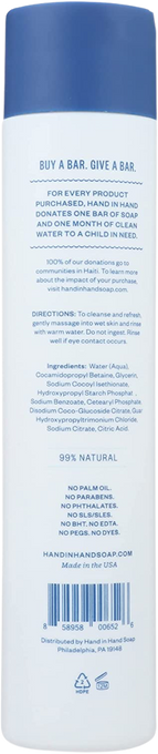 Ingredients: Water (Aqua), Cocamidopropyl Betaine, Glycerin, Sodium Cocoyl Isethionate, Hydroxypropyl Starch Phosphate, Sodium Benzoate, Cetearyl Phosphate, Disodium Coco-Glucoside Citrate, Guar Hydroxypropyltrimonium Chloride, Sodium Citrate, Citric Acid.