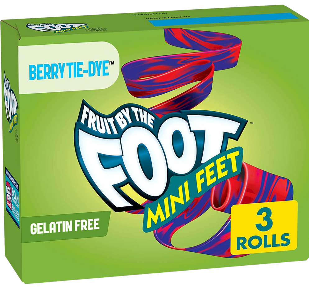 FRUIT FLAVORED SNACKS: Unwrap delicious fun with Fruit by the Foot; Each tasty fruit flavored sheets strip packs a whole lot of berry tie-dye flavor and is rolled into a coil to create an exciting treat for the whole family