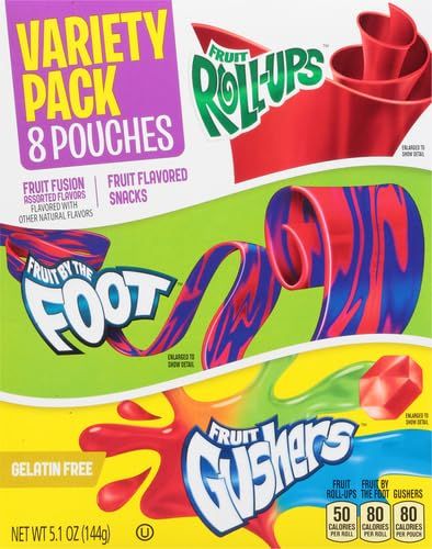 - Includes a mix of Fruit Roll-Ups, Fruit by the Foot, and Gushers for endless snacking fun.