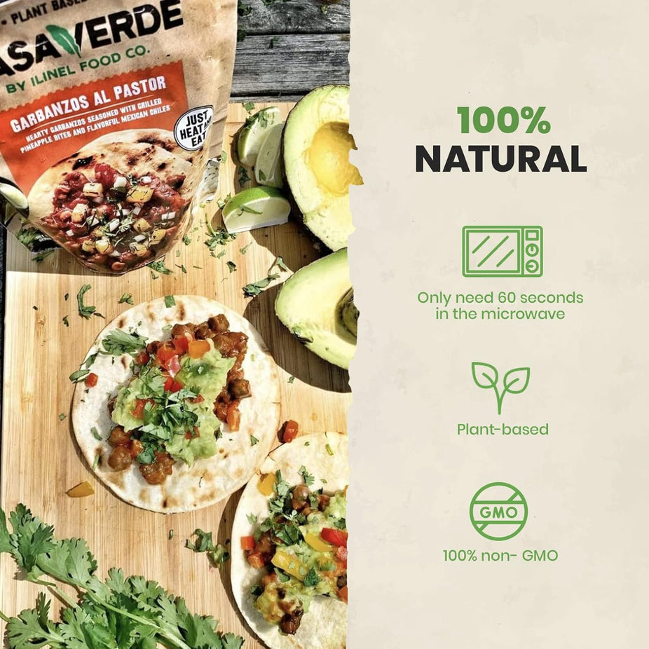 Casa Verde Garbanzos Al Pastor is a delicious, 100% vegan, and non-GMO dish that combines the spice of traditional Mexican chilis with the sweetness of grilled pineapple for a perfectly balanced, flavorful meal.