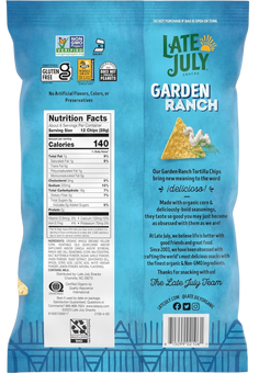 Ingredients: Organic Whole Ground Yellow Corn, Vegetable Oils (sunflower And/or Safflower And/or Canola), Ranch And Dill Seasoning (corn Maltodextrin, Salt, Buttermilk Powder, Sugar, Garlic Powder, Onion Powder, Yeast Extract, Dehydrated Dill, Spices, Citric Acid, Lactic Acid, White Vinegar Powder, Lemon Powder, Natural Flavoring).