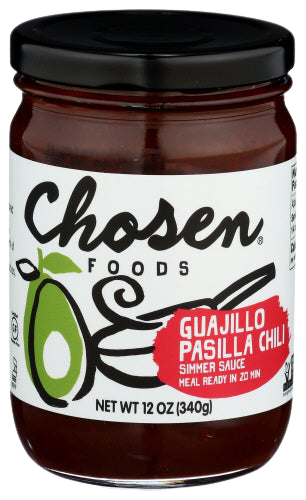 Ingredients: Water, Guajillo Pepper, Apple Cider Vinegar, Lime Juice Concentrate, Pasilla Pepper, Onion, Garlic, Carrot, Celery, Tapioca Starch, Sea Salt, Avocado Oil, Cumin, Date Syrup, Black Pepper, Mexican Oregano.